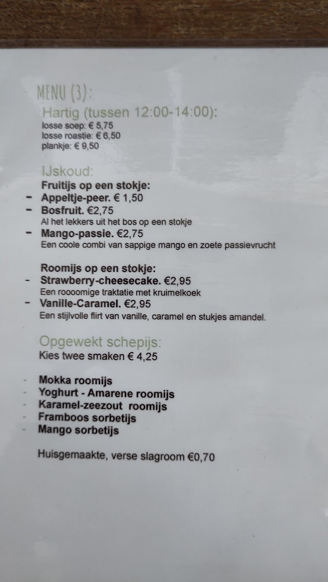 [H]eerlijk! Bed & Breakfast en Theetuin Menu